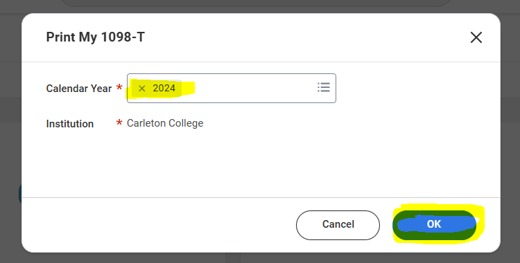 The Business Office will notify eligible students in January when IRS Form 1098-T statements are available for the appropriate year in Workday. At that time, students can download a copy of the form. In many cases a parent or guardian claiming you as a dependent on their tax return will need a copy of this form.