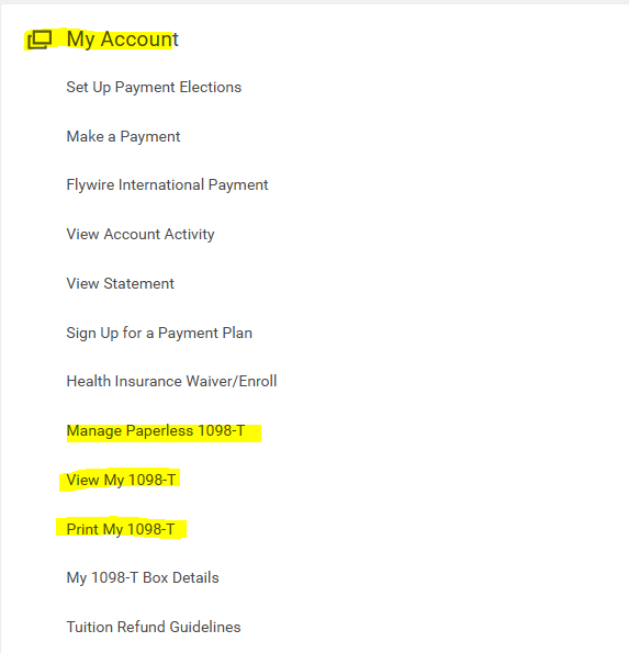 2.) Under the My account link list you will see several 1098-T links/tasks.