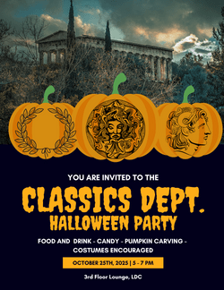 Classics SDAs, Zaria and Helen, are hosting a Halloween Party in the 3rd Floor Lounge of the LDC. Come and carve some pumpkins and enjoy time spent with other like-minded Classics Enthusiasts. Pizza, sparkling water and candy will be provided, along with all carving tools and some stencil options.