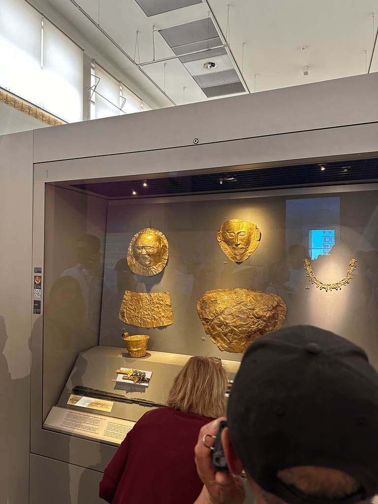 The day after we headed to the National Archaeological museum, which I highly recommend. We’ve been studying a lot about the Mycenaean civilizations, which marked the end of the Bronze age. There have been incredible finds from this period, especially tombs which are great places for excavation sites because of the level of preservation. These cities had tons of wealth, especially gold. My favorite artifacts in the museum were these death masks: