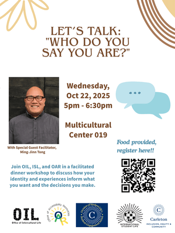 Join OIL, ISL and OAR in a facilitated session, with Intercultural Coach Ming-Jinn Tong where students will wrestle with these questions and engage in a process of self-discovery leading to healthy conviction and confidence.