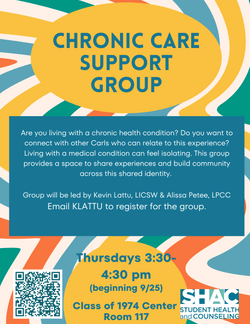 Are you living with a chronic health condition? Do you want to connect with other Carls who can relate to this experience? Living with a medical condition can feel isolating. This group provides a space to share experiences and build community across this shared identity.
